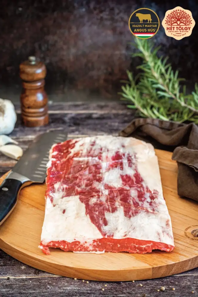 Hosszúkás, erőteljes rostú vágás a hasfalból. Ízgazdag, karakteres.