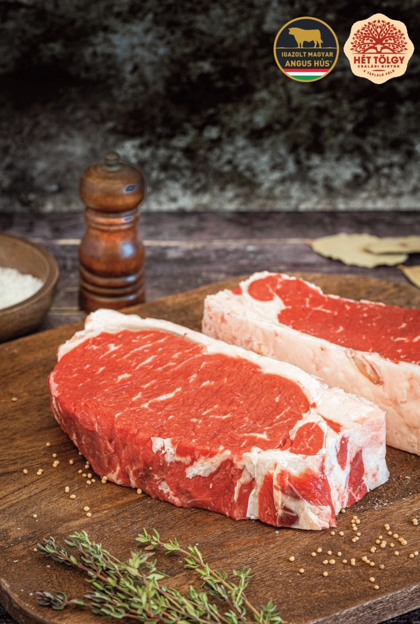 A New York Strip a marha egyik legikonikusabb steakje: tökéletes egyensúly a telt húsíz, a szaftosság és a határozott textúra között.
